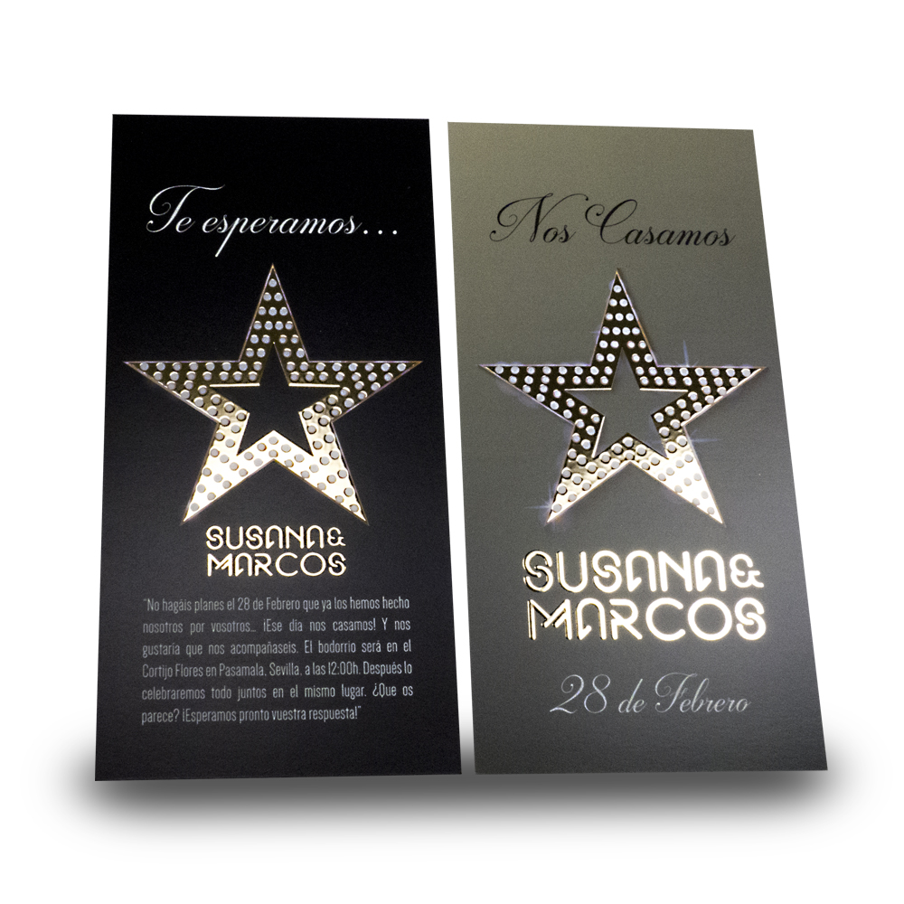Invitación de Boda 1021 con Stamping Oro 2 caras